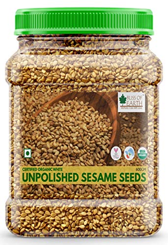 Bliss of Earth Organic Unpolished Sesame seeds are an excellent source of copper calcium omega fatty acids iron magnesium phosphorus zinc and selenium. Sesame Seeds are also a good source of fiber with a rich nutty flavour. Called the queen of oil seeds these tiny seeds are a go-to topping on breadsticks and burger buns. Ingredients: Organic Sesame Seeds