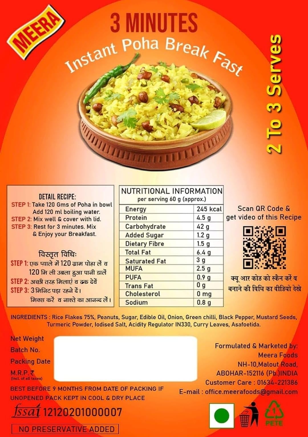 Made with fresh ingredients our quick and instant poha is made up of rice flakes and best spices Green Chilli Lemon Powder Mustard Seeds Green Coriander Turmeric Powder Cumin Curry Leaves