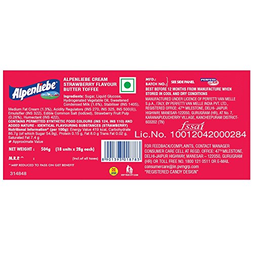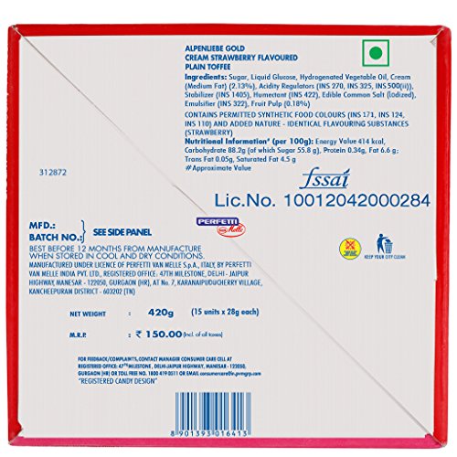 Never want to run out of the yummy Alpenliebe Gold Candy? Grab Now a share pack of 15 sticks for you and your kids to enjoy these yummy Cream Strawberry flavoured toffees. Alpenliebe Gold cream strawberry flavoured toffee is an attractive candy with swirl on top design. It comes in a convenient stick pack so that you can relish it anytime. This Product is 100% Vegetarian
