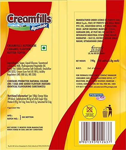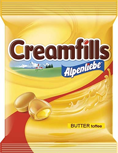 Creamfills Alpenliebe Butter toffee has a wonderful surprise' when you eat it where initially you relish the caramel candy and are then delighted by the surprise of creamy filling inside. Now available in amazing share pack for entire family to enjoy. This Product is 100% Vegetarian