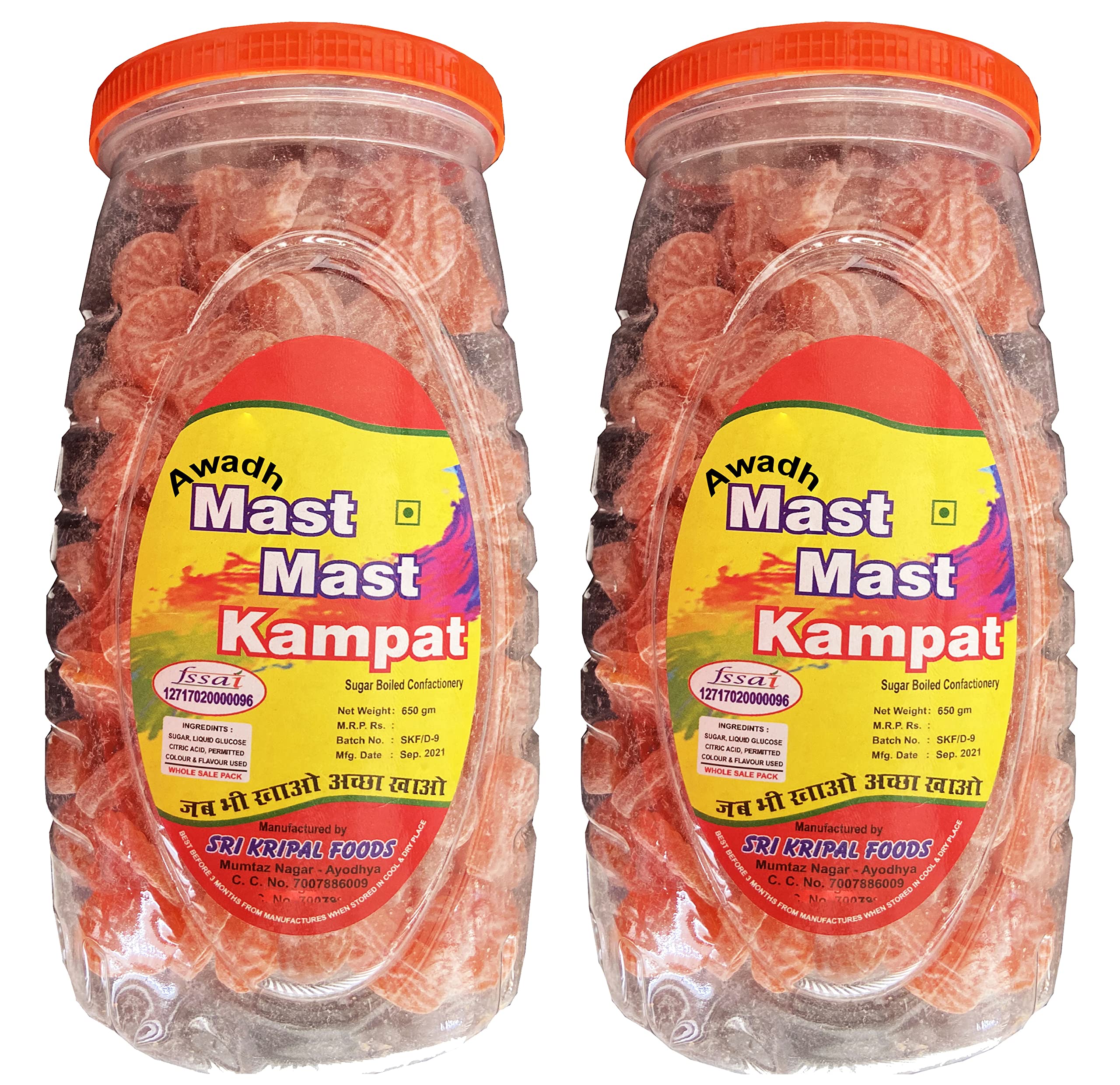 Awadh Mast Mast Kampat Santra Goli|Fatafat Kampat|Orange Hard Boiled Candy|Refresh Childhood Memories|Kahtti Mitthi Same Old Memories Taste 650 Gramsx2 Pack Of 2