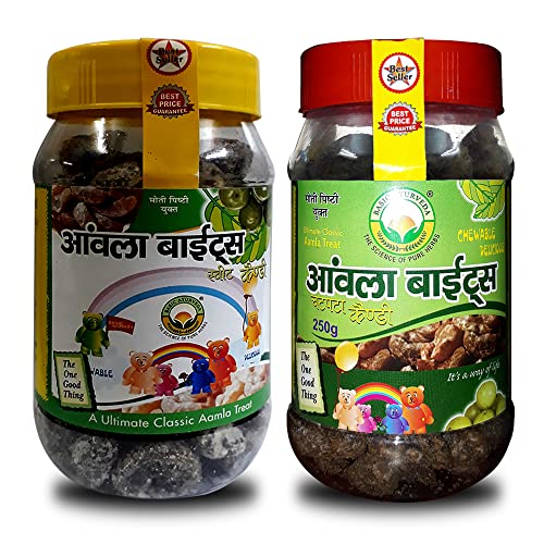 • Amla Bite Candy Sweet 250g and Chatpata 250g combo pack Aamla are beneficial for several health issues and help the body in digesting food. It is a rich source of Vitamin C and is beneficial even in form of candies.