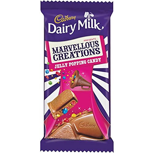 Cadbury dairy milk marvellous creations is anything but an ordinary chocolate. The product combines exciting inclusions like gems jelly and popping candy in an indulgent bar of milk chocolate that literally explodes in your mouth with every unpredictably delicious bite.