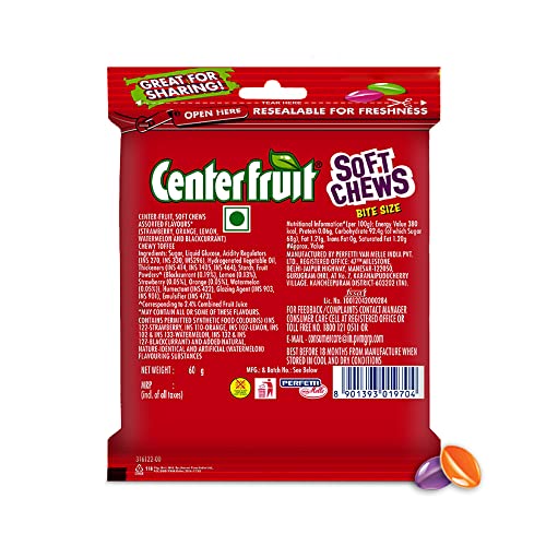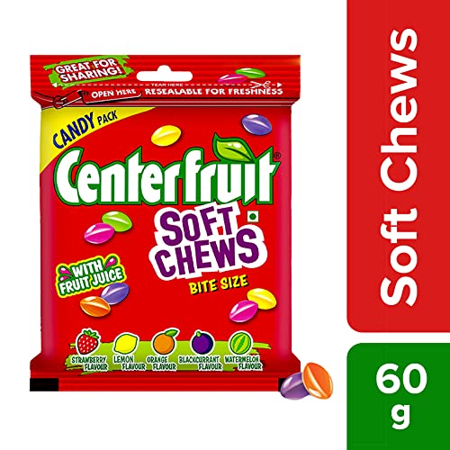 CENTER FRUIT Soft Chews, Assorted Flavour Fruit Candy, 60 Gram