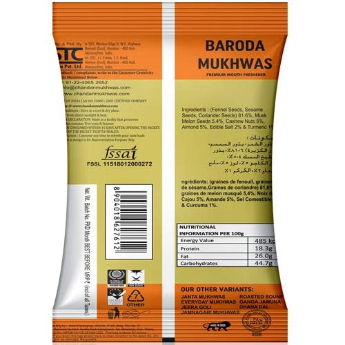 This Baroda Mukhwas is a rich blend of rich ingredients which works as the perfect indulgence for your taste buds. This unique blend is filled with the goodness of fennel seeds sesame seeds coriander seeds watermelon seeds along with a dash of cashews and almonds. This mix will gently tease your tongue refreshing you and help you beat your daytime cravings. This delectable item along with a taste boost comes with added health benefits and improves gut health. Filled with natural goodness no colour or flavours.