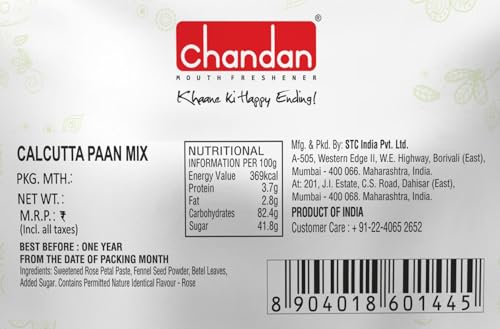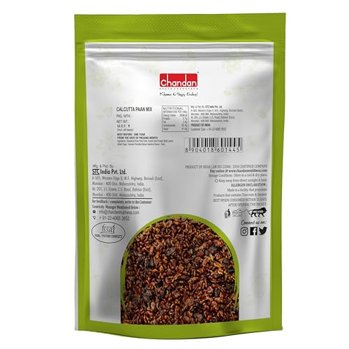 Fennel Seeds Betel LeavesSweetened Rose Petal Paste Indian Gooseberry Added Sugar Dry Dates & Spice extract. Contains Permitted Natural Colour-INS-150d Contains Nature Identical Flavour-Rose.Calcutta is a city of many flavours the food habits are as rich as the culture of this city. One particular item of their versatile menu which is much dearer to most of the Bengali folk is meetha paan. Calcutta Meetha Paan is a delicious and refreshing mix of Gulkand Menthol Paan Leaf Saunf Elaichi etc. You can eat it to fill your mouth with refreshing flavour or have a palm full after your meal as a churan choice is yours. We have the most authentic product prepared processed and packed in a very hygienic condition.