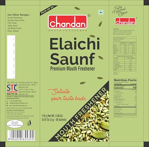 Chandan Mouth Freshener Elaichi Saunf 50 Sachets | Rich in Anti-Oxidants And A Delicious Mukhwas (Pack of 5)