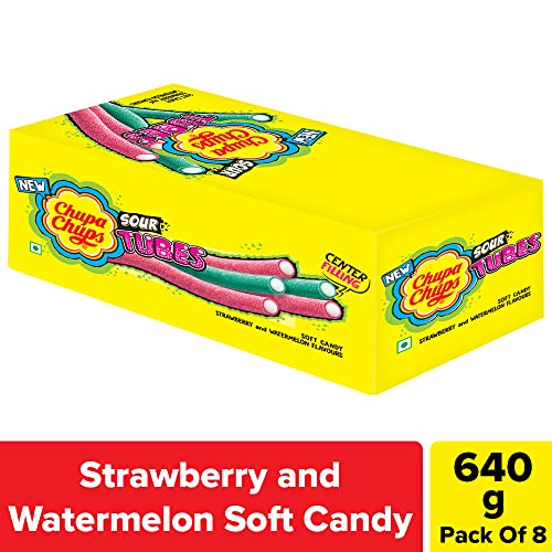 Chupa Chups Long Tubes, Strawberry and Watermelon flovour, soft candy - 640 grams - pack of 8