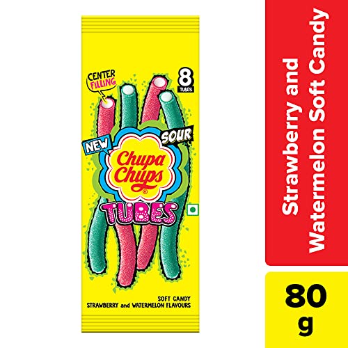 Chupa Chups Long Tubes, Strawberry and Watermelon flovour, soft candy - 80grams