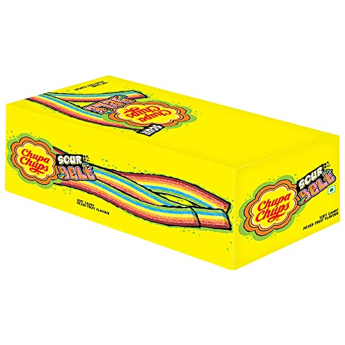 Chupa Chups , Sour Belt, Mixed Fruit Punch Flavour, Soft & Chewy Toffee Pack, 691.2 Grams- Pack of 12