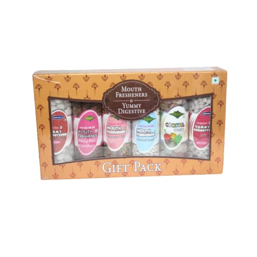 • In this gift pack - Anardana Goli 110 GM Jeera Goli Special 120g Mitha Pan Chhuhara 90 GM Satrangi Mukhwas 100 GM Madrasi Sonff 100 GM and Cocktail Candy 120 GM