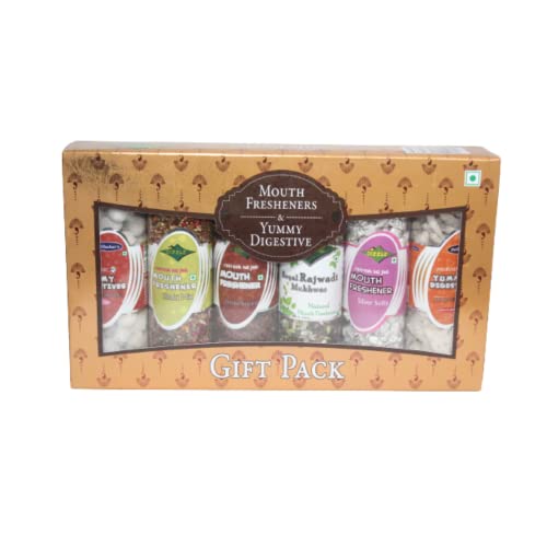 It is a combo of 6 different types flavours of yummy digestives churans and mouth freshener which includes Anardana Goli 210 GM Aplam Chaplam 165 GM Shahi Mukhwas 180 GM Jhilmil Supari 150 GM Silver Softy 200 GM and Royal Rajwadi Mukhwas 210 GM. Dilbahar yumy digestive & mouth freshener gift packs are best suit for weddings festival & corporate giftings.