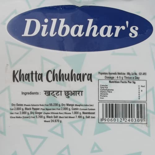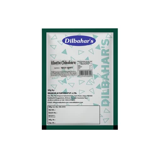 Shop a variety of digestive products from Dilbahar available on Amazon. Dilbahar's Khatta Chhuhara is a unique and flavorful digestive aid designed to help improve digestion and refresh your mouth after meals. The tangy and chatpati taste of Khatta Chhuhara makes it a perfect after-meal mouth freshener. This delicious Mukhwas is packed with natural ingredients that help promote digestion and provide a refreshing taste to your palate. It is traditionally used as a pachak (digestive) and helps ease any discomfort after heavy meals.This 400G pack of two is a great addition to your post-meal routine offering a tangy flavor that will leave your taste buds tingling while helping with the digestive process. It is a well-loved product in many households offering the ideal combination of taste and health benefits. The Khatta Chhuhara also has properties that are known to stimulate digestion making it the perfect natural remedy to enhance your digestive system's performance.Ideal for those who enjoy a flavorful digestive snack after meals Dilbahar's Khatta Chhuhara provides an easy and enjoyable way to refresh your mouth and aid digestion. Whether you're enjoying a festive meal or a regular lunch this pachak will help you maintain a comfortable digestive balance.