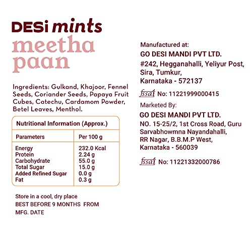 Go Desi Meetha Paan Mouth fresheners Desi Mints Refreshing Mouthfreshener Mukhwas (2 x 90g)