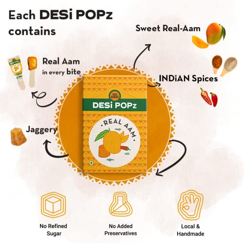 GO DESi Popz - Real Aam Pop | Mango & Jaggery Candy | Aam Candy Packet | Lollipop | Fruit Toffee | Indian Snacks | 40 Pieces