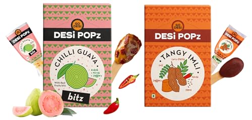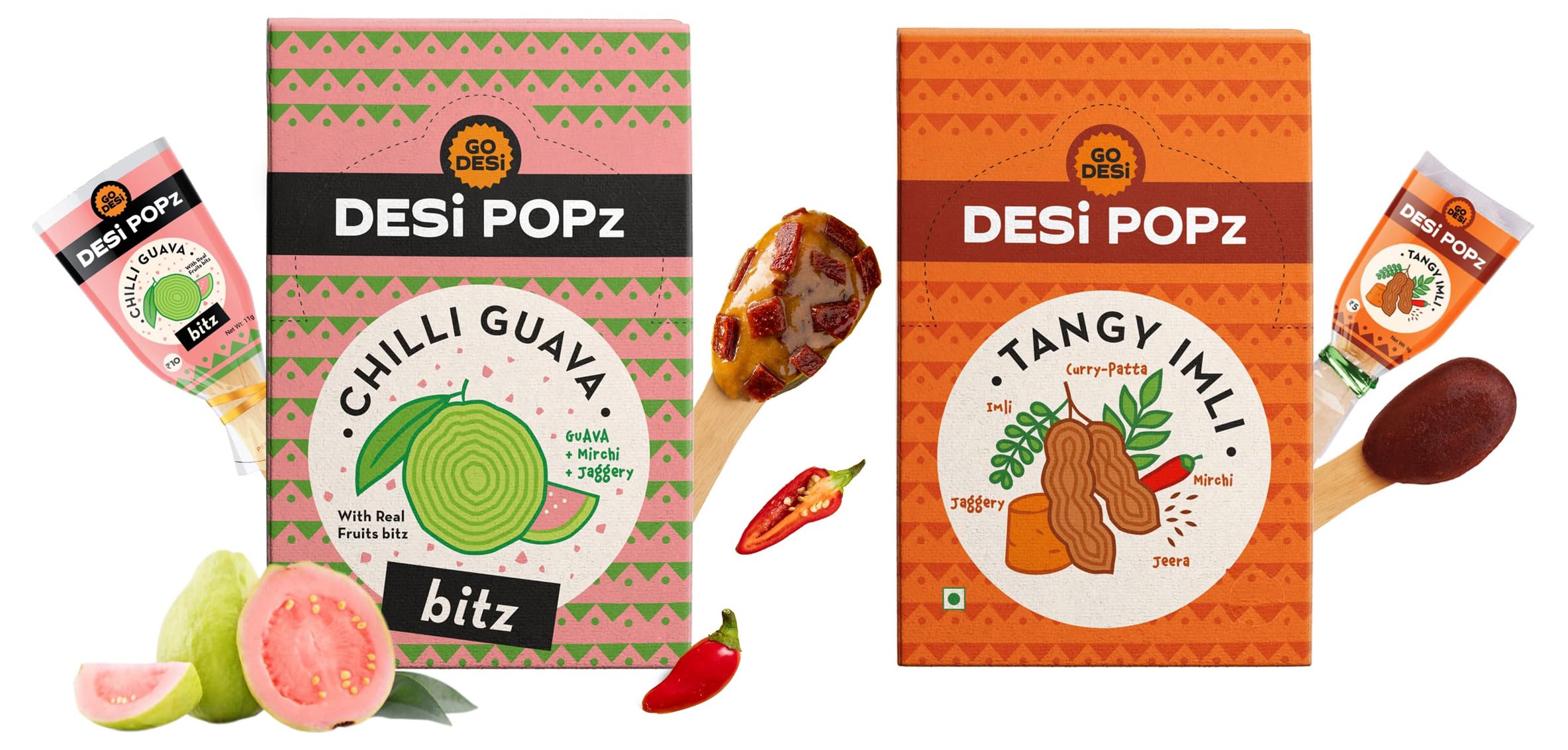 GO DESi POPz with Bitz | Chilli Guava | 50 Pcs | Fruit Snacks 400 gmYour favourite DESi lollipops just got bigger and better with the new DESi POPz with Bits- Chilli Guava: A spicy-sweet lollipop featuring a classic DESi combo- Ripe pink guavas and Chilli. What's more every bite hides a special surprise- real guava pieces!!!GO DESi Imli Pop Tamarind & Jaggery Candy | 40 Pieces | Tangy Imli | Imli Candy | Lollipop | Digestive CandyImli pop or Imli Candy is an age-old traditional spicy sour treat made with fresh and natural tamarind jaggery chilli and curry leaves. Made by hand in small rural kitchens. Every lick will take you back to your childhood. Unlike other packaged food go desi products are not made at a factory they are prepared by hand by micro-entrepreneurs women or farmer in rural areas.