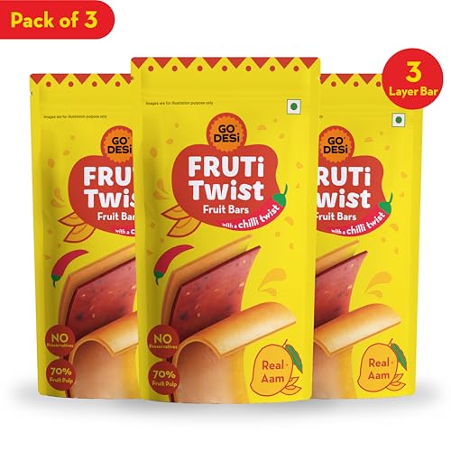 GO DESi Real Aam Fruti Twist Fruit Bars - 3 x Pack of 10 pieces Aam Papad Mango Fruit Jelly
