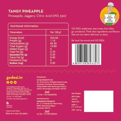 GO DESi Tangy Pineapple Candy 150g Fruit Snacks Bites Dehydrated