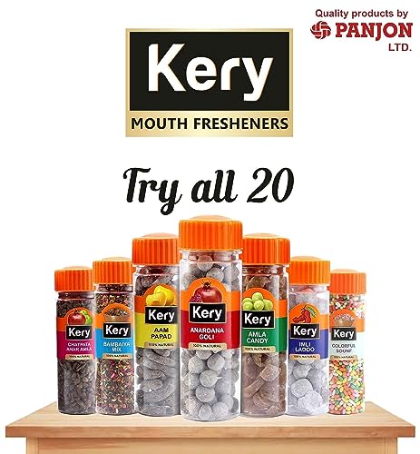 100% Natural & Authentic Indian Taste Premium Packaging comes in a handy air tight jar bottle pack so the flavors & variety don't escape easily. Prepared processed and packed in a very hygienic condition to ensure better quality and authentic flavour. Our Mukhwas Set is infused with the goodness of fruits organic herbs and ingredients which are proven to be beneficial for health & digestion.This Indian after-meal snack is used for digestion widely used as a mouth freshener especially after meals.At Kery we produce only the best and so the dry ingredients used to make our are sourced exclusively from responsible farmers and producers. With the use of best industry practices we produce the highest quality snacks.Try all Pachak Ladoo Khajoor Aam Papad Jeeragoli White Sauf Banarasi Pan Anardana & Navratan Mukhvas.