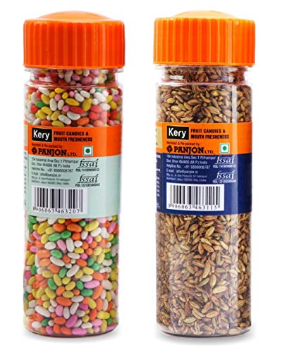• Kery Mukhwas Coloured Saunf & Roasted Saunf Mukhwas Mouth Freshener100% Natural Digestive Mukhvas 240g2 bottles (After Meal Mouth Freshner)