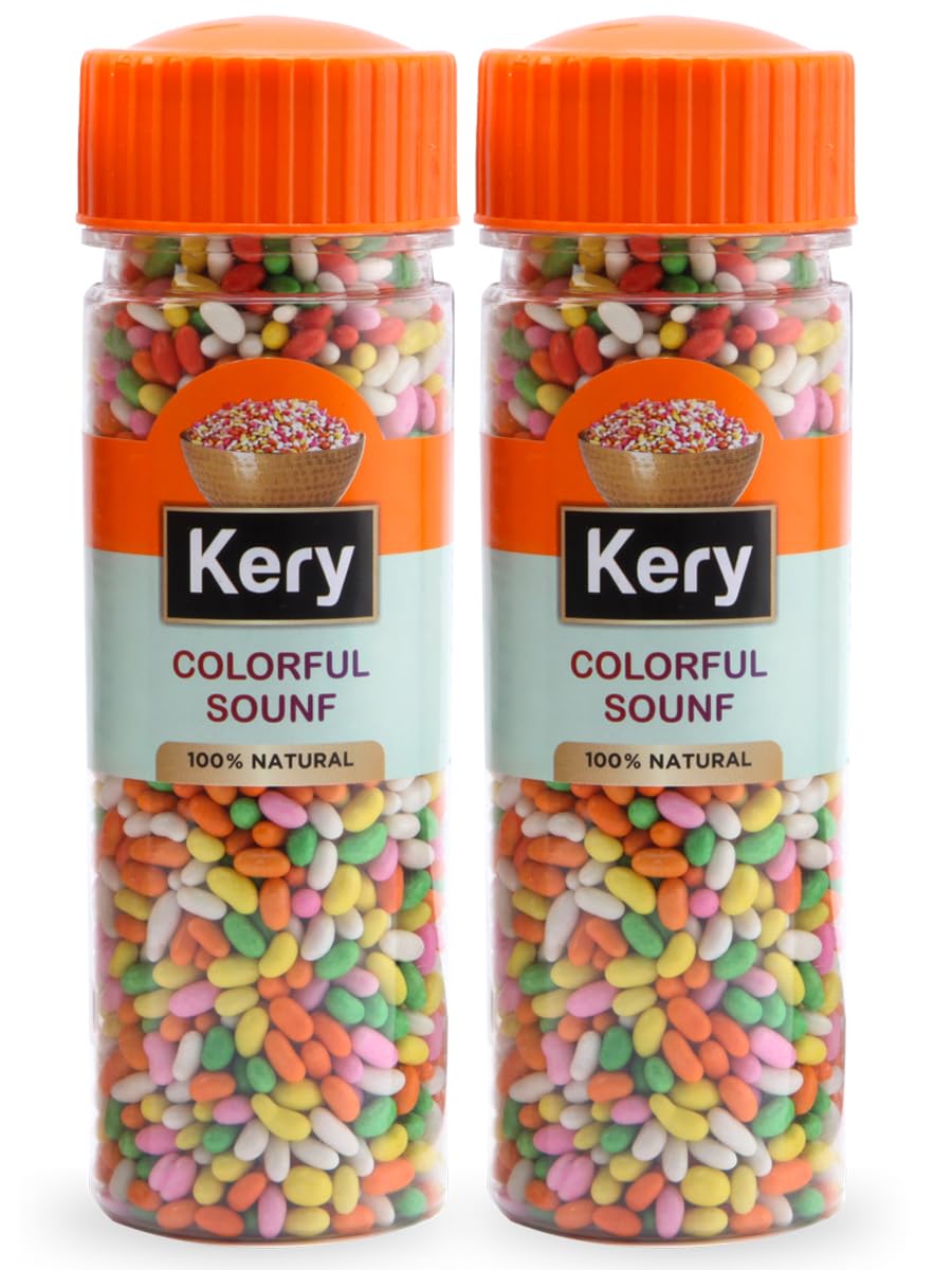 • Kery Coloured Saunf Mukhwas Mouth Freshener 100% Natural Digestive Mukhwas 180g x 2 bottles (After Meal Mouth Freshner)