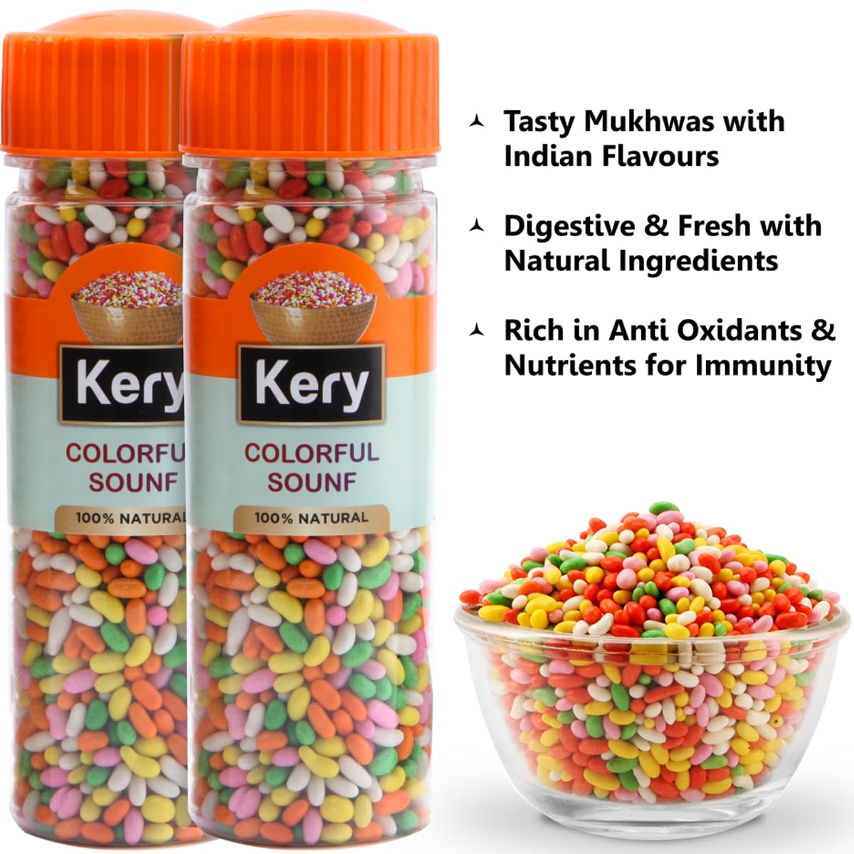 Kery Coloured Saunf Mukhwas Mouth Freshener100% Natural Digestive Mukhwas 180g x 2 bottles (After Meal Mouth Freshner)