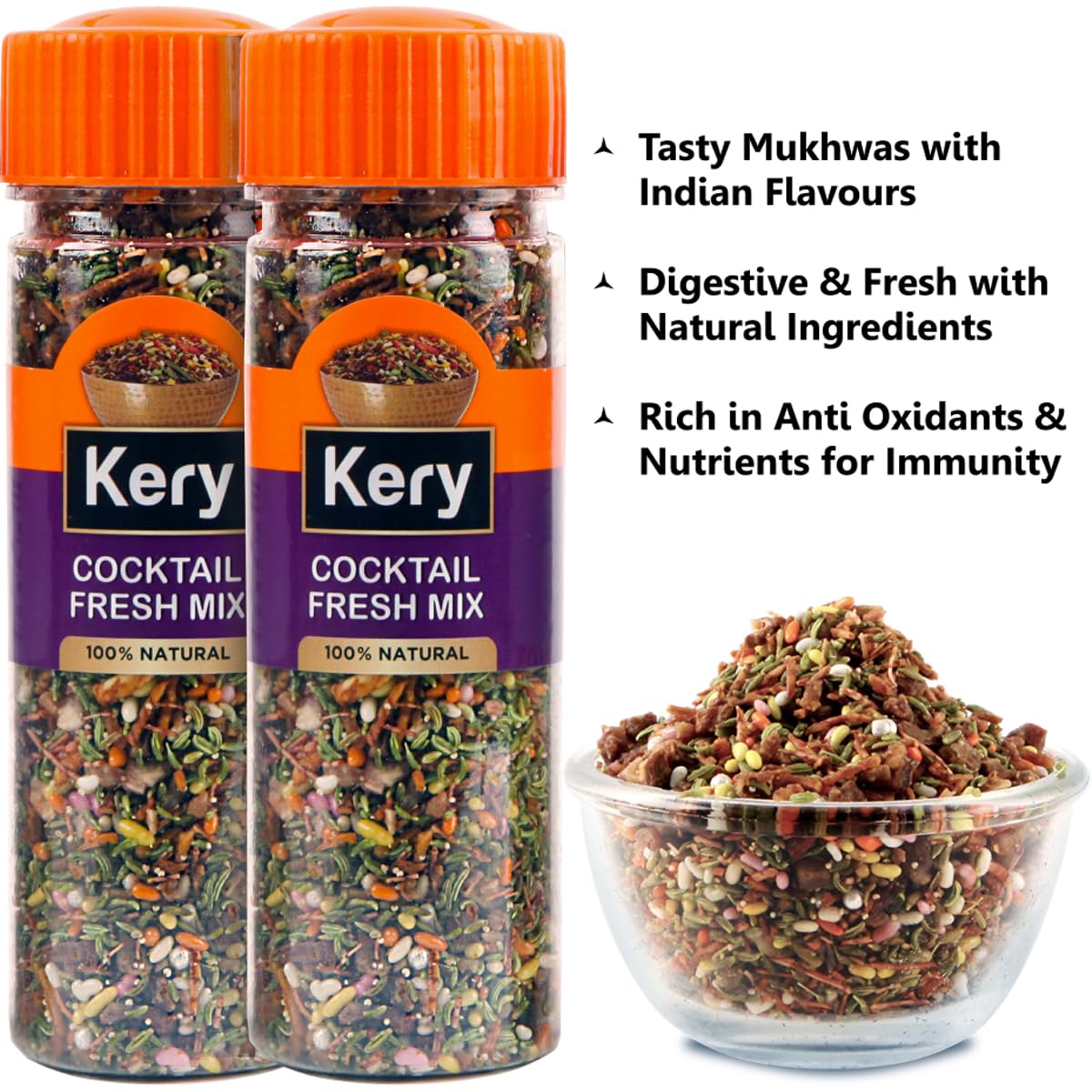 • Kery Royal Fresh Mix Mukhwas Mouth Freshener 100% Natural Digestive Mukhwas 110g x 2 bottles (After Meal Mouth Freshner)