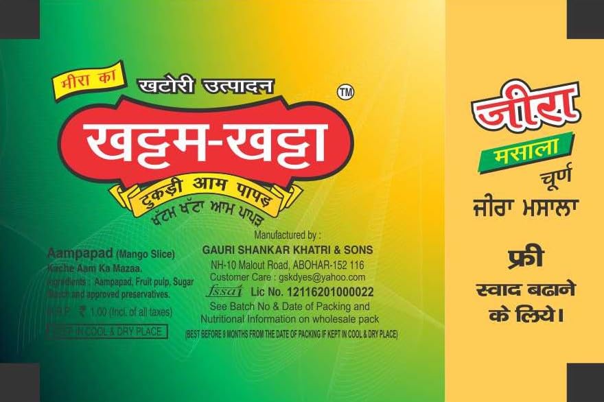 KHATTAM KHATTA CUTTING AAMPAPAD (PACK OF 03) MARKETED BY : GAURI SHANKAR KHATRI & SONS
