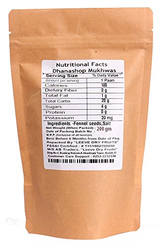 Leeve dry fruits brings fresh mukhwas or mouth freshener and have wide range of mukhwas listed mukhwas like rajwadi dhanashop Kashmiri jaipoori mint imli laddoo anarkali digestive roasted flax seeds Singapore harde and chocolate coated mukhwas. This type of mukhwas is roasted badishop (fennel seeds) and dhana dal it will comes in 200 grams packed.