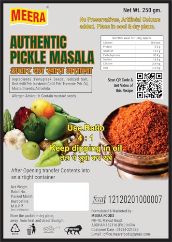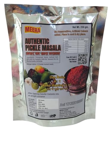 Indulge in the tantalizing flavors of authentic Indian pickles Masala with this pack of 1 from Meera's Authentic Pickle Masala. Meticulously prepared with care and expertise these pickles Masala are not only a delicious accompaniment to any meal but also a testament to the rich culinary heritage of India. Embrace the essence of India with every bite and elevate your culinary experiences to new heights.