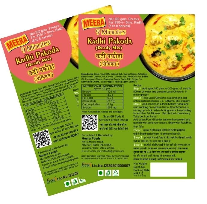 Meera's 9 Minutes Kadhi Pakoda Ready MixPremix(100X2)200GmsPack Of 2Marketed By : Gauri Shankar Khatri&Sons