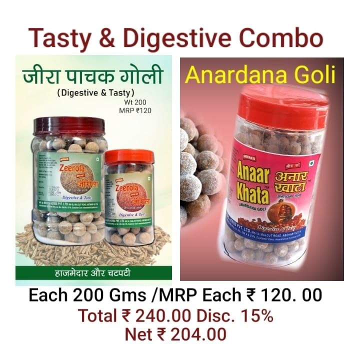 Anardana goli also known as anardana candy or anardana tablets typically comes in a round form. It is a small circular candy made from crushed or powdered anardana (dried pomegranate seeds). The goli is usually hard and compact making it convenient to carry and enjoy as a tangy and refreshing treat. The round shape allows for easy consumption and adds to the fun of eating anardana goli. Give it a try for a burst of sour and tangy goodness! Zeera Goli is a candy made from roasted cumin seeds giving it a unique and savory flavor.