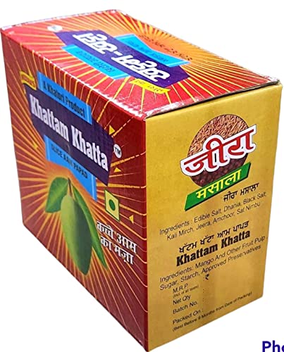 Ingredients : Mango and other Fruit Pulp Sugar Starch Approved Preservatives Edible Salt Dhania Black Salt Kali Mirch Jeera Amchoor Sat Nimbu. Aamchur 3.47% Anardana 6.44% Saunf 0.77% Coriander 1.29% Cumin 1.29% Black pepper 0.77% Pipal 0.77% Black Salt 1.29% Salt 3.87% Sat Nimbu 2.06% Sugar 77.56% Storage Instructions : Keep in Cool and Dry Place. Shelf Life : Best Before 9 Months from the date of manufacturing