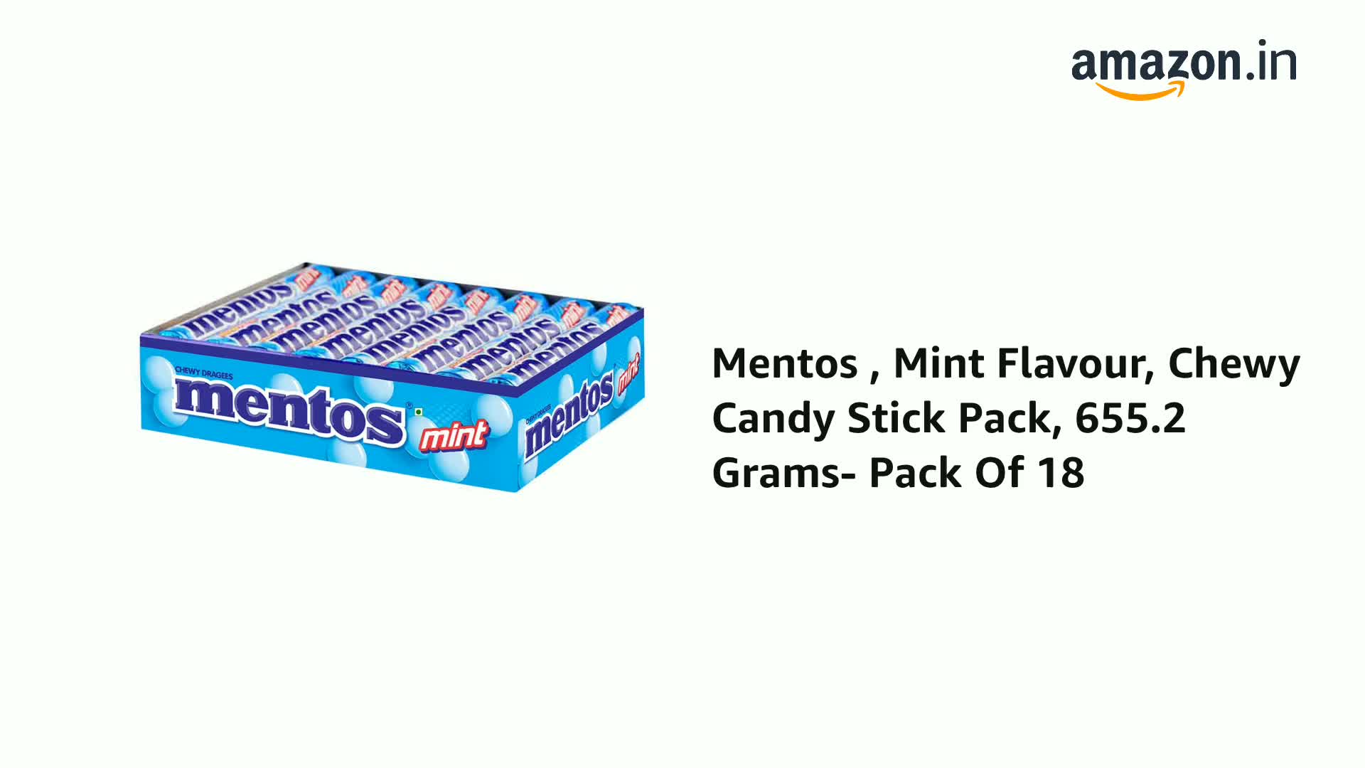 Mentos , Mint Flavour, Chewy Candy Stick Pack, 655.2 Grams- Pack Of 18