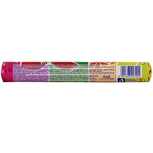 Mentos Rainbow Mentos Discover the exciting taste of Mentos Rainbow a mix of watermelon cherry orange raspberry grape pineapple and strawberry. Round chewy candies that are crunchy outside and chewy inside.