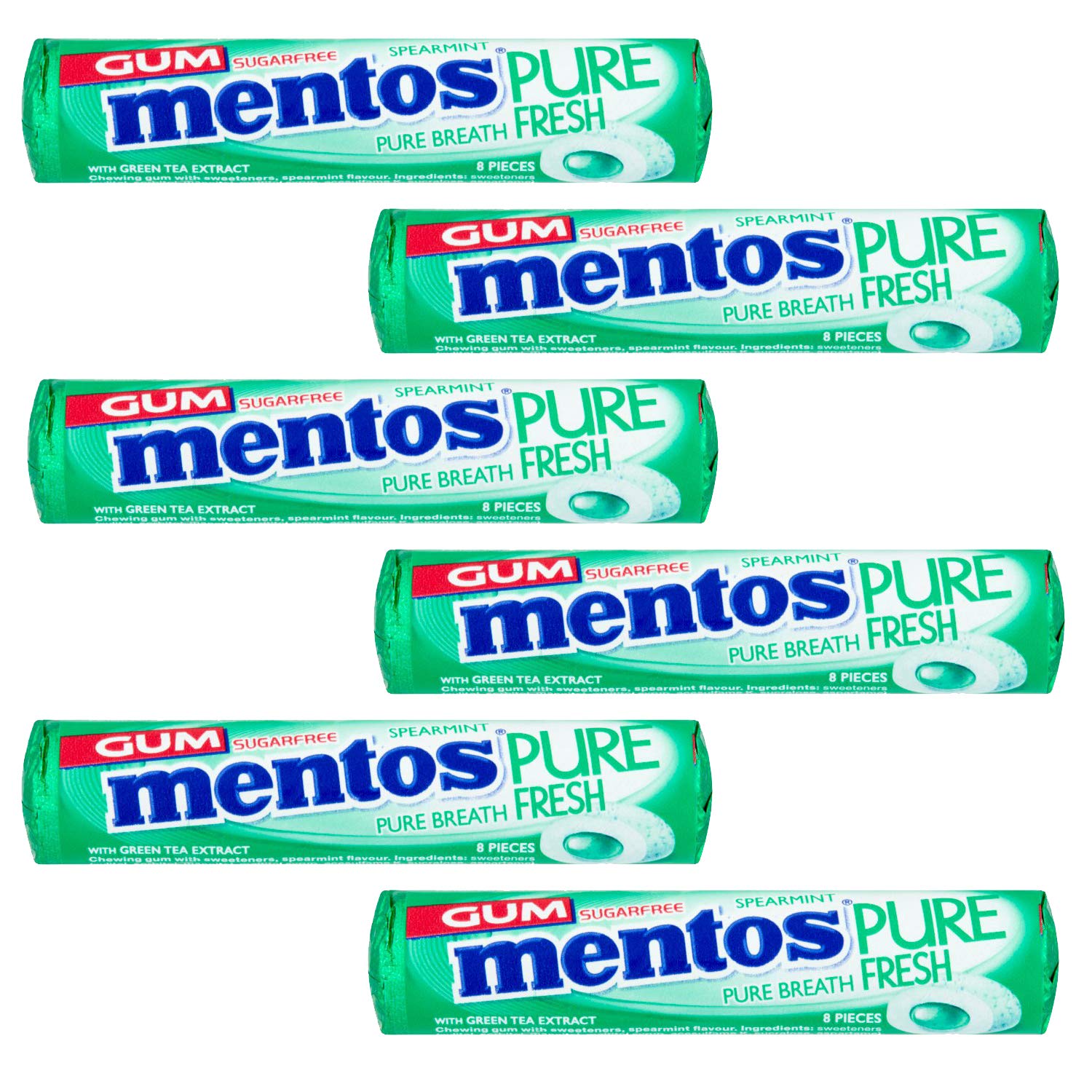 Mentos Sugarfree Pure Fresh Spearmint 6 x 15.5 g
