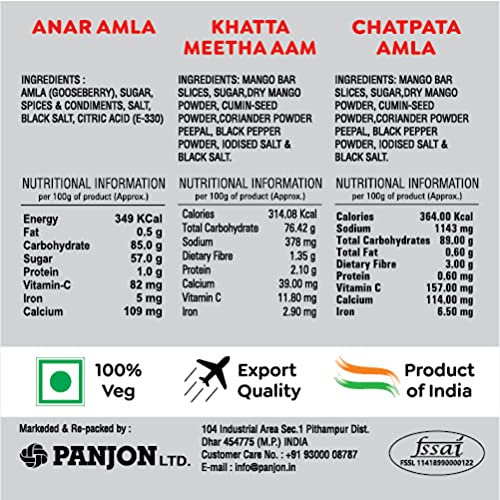 Panjon Swad Amla Anar Chatpata Amla & Khatta Meetha Aam Papad (Candy Mouth Freshener) 3 Bottles 365g