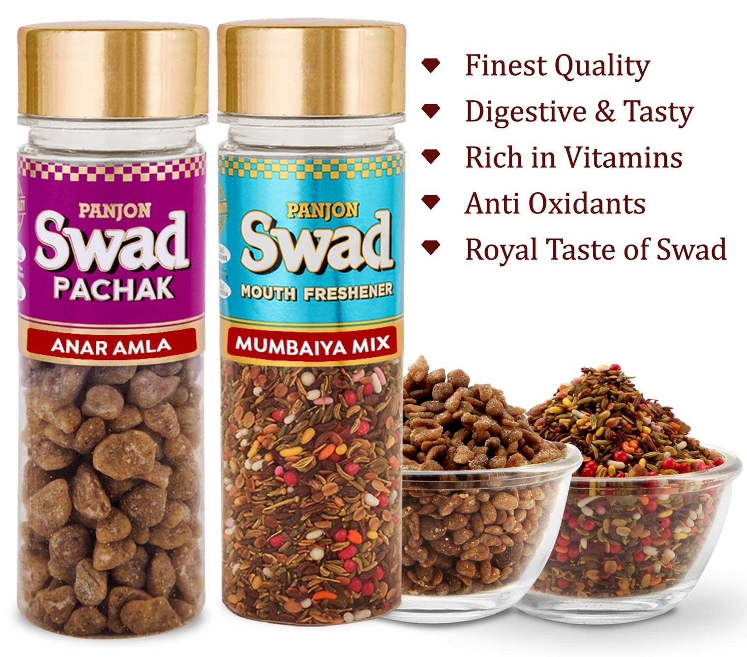 Also try all 20 Swad Mouthfresheners Swad Pachak Swad Digestive Candy Toffee. Kery Anardana Imli Ladoo Khajoor Amla Aam Papad Saunf & Mukhwas.