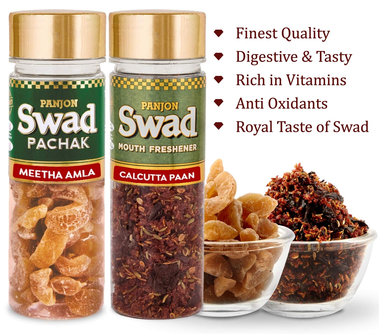 Panjon Swad Meetha Amla & Culcutta Paan Pachak (Mukhwas Mouth Fresheners) 2 Bottles 215g