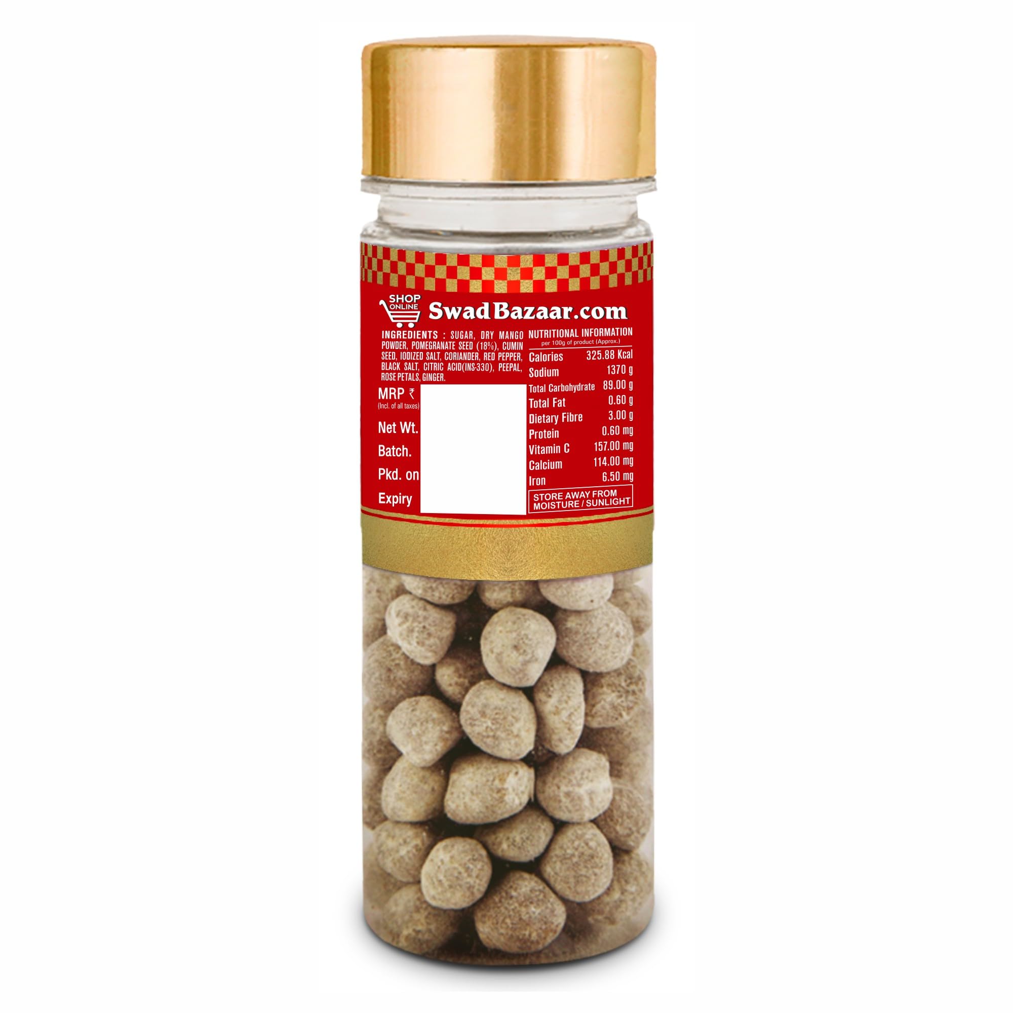 Swad the makers of Swad digestive candy present their premium range of mouth fresheners and pachak mukhwas to relish your cravings for tingling taste and mouthwatering aroma. Infused with the goodness of handpicked fruits and best quality condiments Swad pachak stimulates the digestive enzymes and acts as an appetizer. It strengthens the digestive process and also promotes absorption of nutrients to cure stomach disorders like acidity gas and indigestion. Swad pachak's handpicked ingredients boost your immune system to keep you charged up all day. Swad pachak mouth fresheners range includes 20 flavors - shahi anardana special jeera goli white sweet saunf colored saunf roasted alsi Rajasthani roasted saunf shahi banarasi paan special Calcutta paan royal fresh mix shahi navratan mix anar amla khatta meetha khajoor ram ladoo khatta meetha aam papar mumbaiya mix mukhwas hing peda meetha amla chatpata amla chulbuli tamarind imli aam papar mango slices and many more. We guarantee finest quality ingredients in each bottle of Swad pachak. Try all our 20 flavors to tickle your taste buds. To maintain freshness shake the bottle upside down and keep it in a cool and dry place.
