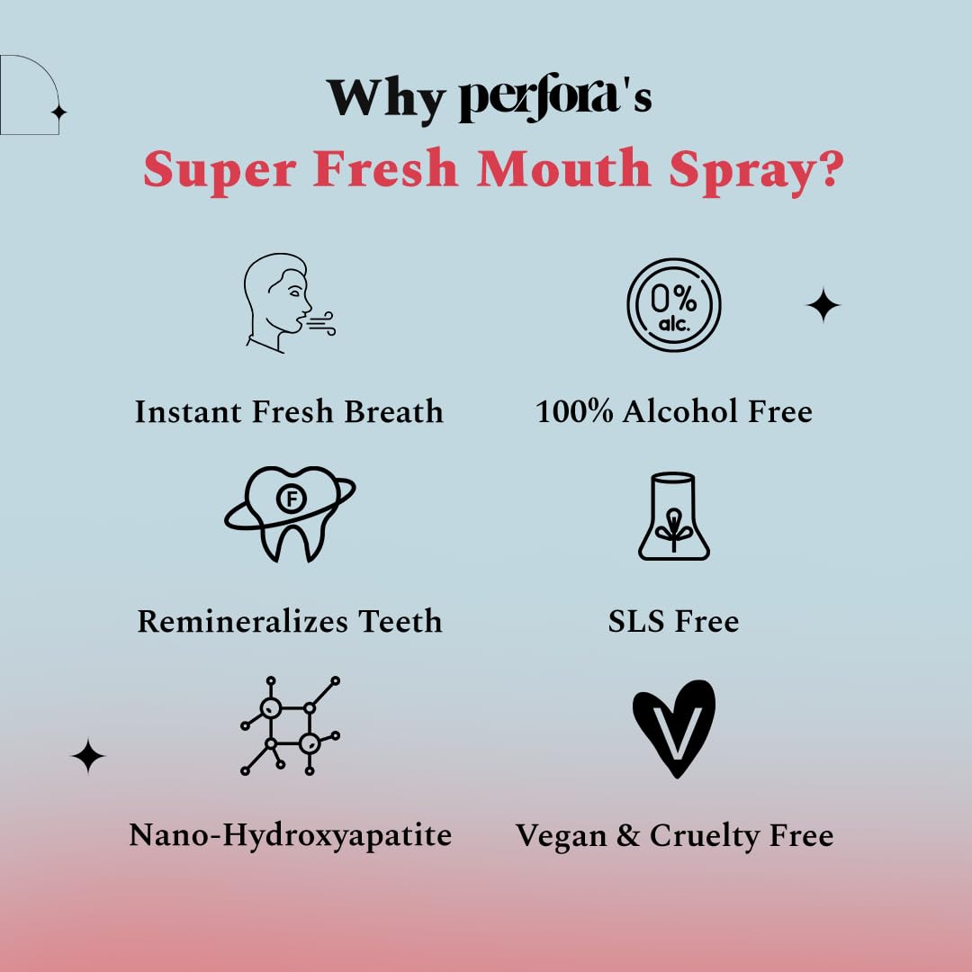 Perfora Super Fresh Sweet Candied Orange Mouth Spray | Instant Fresh Breath Alcohol-Free Teeth Remineralization SLS-Free | 10 ml x 2