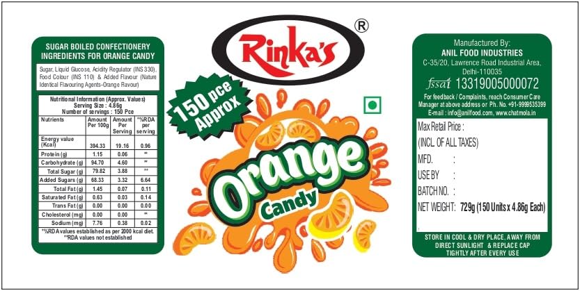 Experience the zesty goodness of Rinka's Long Jar Orange Candy where each jar contains 150 Candy of refreshing orange-flavored delights. Crafted with care these candies capture the essence of tangy oranges in every bite offering a burst of citrusy sweetness that brightens your day. Ideal for citrus enthusiasts these candies deliver an authentic orange flavor that is both satisfying and invigorating. Whether enjoyed as a quick snack or incorporated into desserts and beverages Rinka's Long Jar Orange Candy promises a delightful and versatile taste experience. Perfect for sharing at gatherings or keeping on hand for personal indulgence this long jar ensures ample supply of delicious orange candies. Elevate your snacking moments with Rinka's commitment to quality and flavor and savor the refreshing zest of oranges with every candy.
