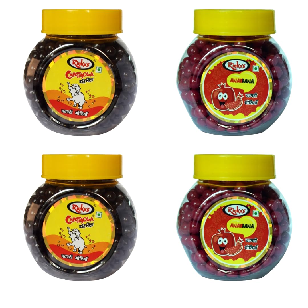 Indulge in the nostalgic taste of Rinka's Chatmola Goli now available in a convenient 170g retail jar. These iconic Indian candies are crafted to perfection blending traditional flavors with a touch of modern sophistication. Rinka's Chatmola is more than just a candyit's a journey into a world of vibrant flavors and delightful surprises. Whether you're treating yourself to a moment of indulgence or sharing the joy with friends and family Chatmola promises to elevate every snacking occasion.Step into a world of bold flavors with Rinka's Chatmola a revolutionary candy invention that combines tanginess with a hint of spice to create a truly unforgettable snacking experience. Each piece is crafted with care ensuring every bite delivers a burst of flavor that tantalizes your taste buds. Experience the revitalizing taste of Rinka's Anardana Goli meticulously crafted to deliver a harmonious blend of sweetness and tanginess. Each candy is infused with the natural essence of Anardana (pomegranate seeds) and traditional spices offering a refreshing burst of flavor that delights the senses and supports digestive wellness. Packaged in a convenient 170g jar Rinka's Anardana Goli ensures freshness and easy access to these flavorful treats whenever cravings strike. Made with premium ingredients and a dedication to quality each candy promises superior taste and satisfaction. Whether enjoyed as a post-meal digestive aid or a flavorful snack throughout the day Rinka's Anardana Goli provides a delicious way to elevate your snacking experience. Treat yourself to the goodness of Anardana and discover why these candies are cherished for their unique flavor and health benefits.
