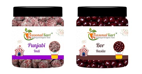 Delight in the vibrant flavors of our Bor Rasila and Punjabi Imli a perfect combination that celebrates the rich culinary heritage of India! Bor Rasila offers a luscious sweet-and-tangy experience crafted from ripe bor (jujube) fruit that bursts with natural sweetness and a hint of tanginess. Each bite is a nostalgic journey reminiscent of traditional Indian sweets. Complementing this is the Punjabi Imli a delicious tamarind treat known for its bold tangy flavor that awakens the palate and adds a delightful zing. This unique pairing of Bor Rasila's sweetness with Punjabi Imli's tartness creates an irresistible snacking option that's both refreshing and satisfying. Whether enjoyed on its own or shared with loved ones this duo is sure to bring a taste of India's vibrant flavors to your snacking routine!