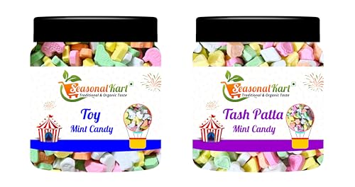 SEASONAL KART Combo Toy Mint Candy & Tash Patta Candy I Sweet & Sour I Juicy Bor I Chatpati mini Goli I Assorted bittersweet (400 Grams Each | Total 800 Grams)