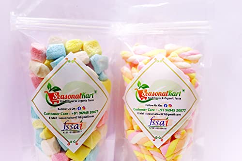 Seasonal Kart Pure Veg Marshmallows Multi Colour Mix Fruits Flavor | Marshmallows Candy (50 Pieces (25 Pieces Each Packet))