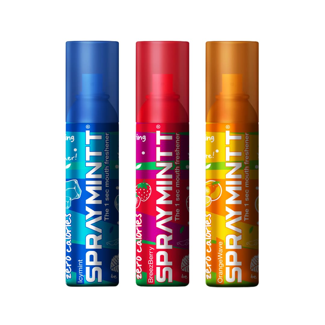 Spraymintt Mouth Freshener | 175+ sprays of instant long lasting with Zero Calories Freshness | Icymint flavour + Brezeberry flavour + Orangewave flavour | 15g - Combo of 3