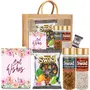 Swad Best Wishes Gift Hamper Set (Mixed Toffee & Rosted Saunf & White Sweet Saunf Pachak Mukhwas Mouthfreshener 25 Candy & 2 bottle) with Greeting Card & Jute BagGift Item