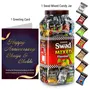 Swad Happy Anniversary Bhaiya Bhabhi Gift with Card (Swad Mixed Flavours Candy 150 Jar & 1 Greeting card) 2 units Happy Anniversary Bhaiya Bhabhi Gift with Card hamper gifts best unique for greeting message customised customized personalised personalized candy toffee candi chocolate hamper boxSwad Trust Since 1986: India's favourite Digestive confectionery candy brand since 1986. A quality product by Panjon Limited.Swad Mixed Candy Jar is made of assorter fruit chewy candy flavours: Kaccha Aam Meetha Pan Imli Cola Coffee & Orange with Vitamin C chocolates mix.Swad Candies helps in digestion & acidity. Its signature taste is relished by all age groups.Try all Swad Mouth fresheners: Mukhwas Paan Anardana Imli Khajoor Amla Aam Papad Saunf & Navratan Mix.