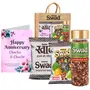 Swad Happy Anniversary Chacha Chachi Gift with Card (25 Swad Candy 25 Mixed Toffee Navratan Mix Mukhwas) in Jute Bag Happy Anniversary Chacha Chachi Gift with Card hamper gifts best unique for greeting message customised customized personalised personalized candy toffee fragrance scent perfumeSwad Trust Since 1986: India's favourite Digestive confectionery candy brand since 1986. A quality product by Panjon Limited.Swad Candy & Mukhwas Mouth fresheners range is made of ayurvedic herbal & digestive ingredients. Swad candy flavours: Kaccha Aam Meetha Pan Imli Cola Coffee & Orange with Vitamin C chocolates mix.Try all Swad Mouth fresheners: Mukhwas Paan Anardana Imli Khajoor Amla Aam Papad Saunf & Navratan Mix.